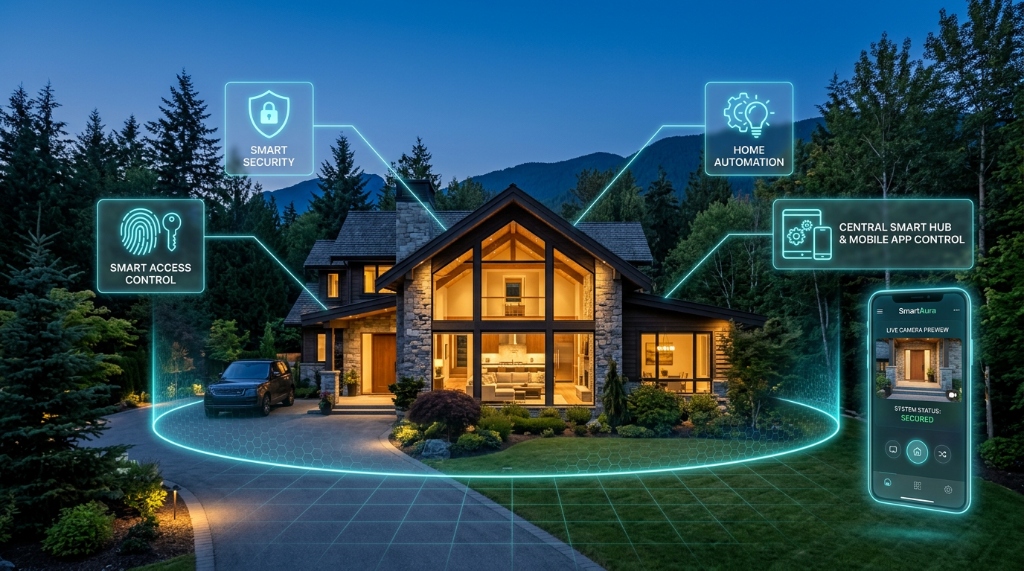 SmartAura designs and installs luxury smart home and commercial automation systems across the GTA. We create intelligent, connected spaces with seamless control of lighting, climate, security, and entertainment.